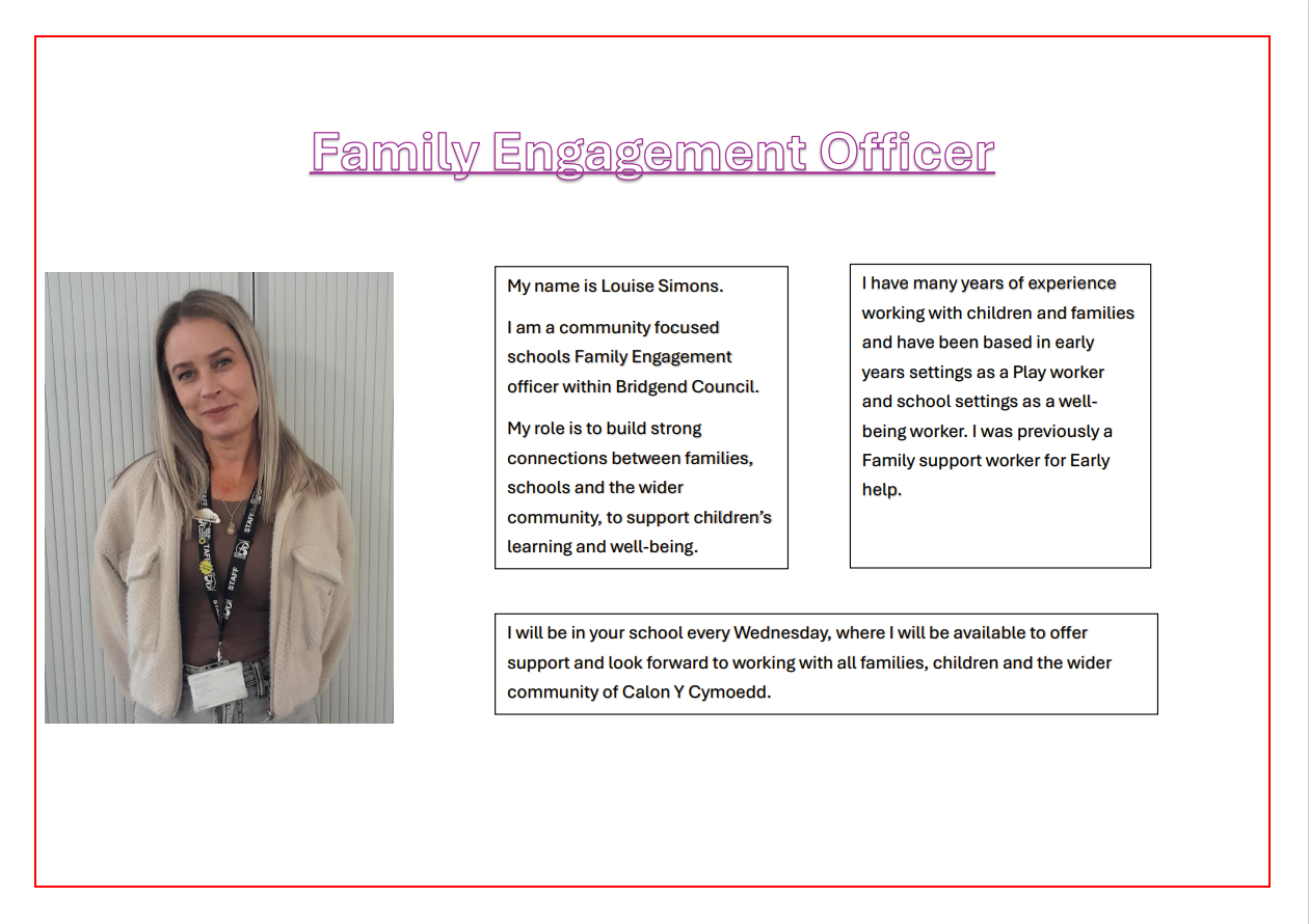 Come and meet Louise our school based Family Engagement Officer.
